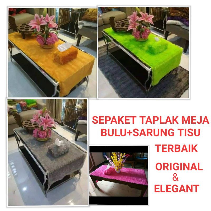 SEPAKET Taplak meja bulu 50x160cm Dan sarung tissue bulu ...
